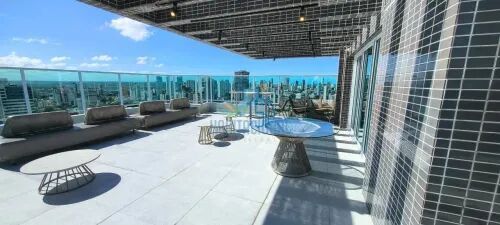 Sky lounge com área gourmet e vista para o pôr do sol