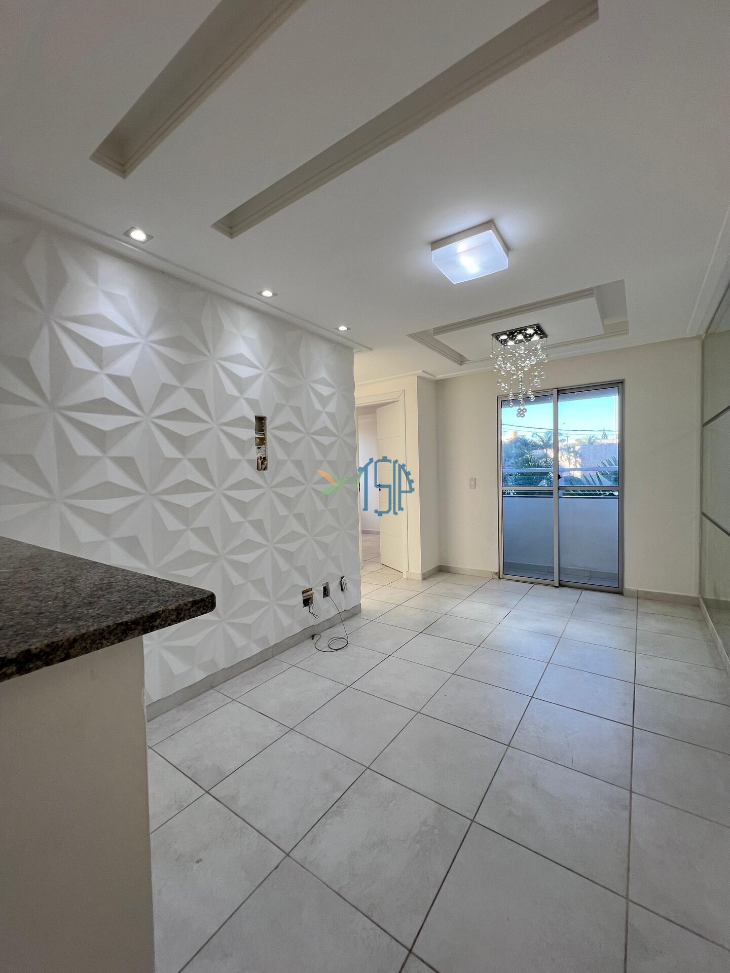 ✅ Sala para 2 ambientes, com parede 3D e lustre