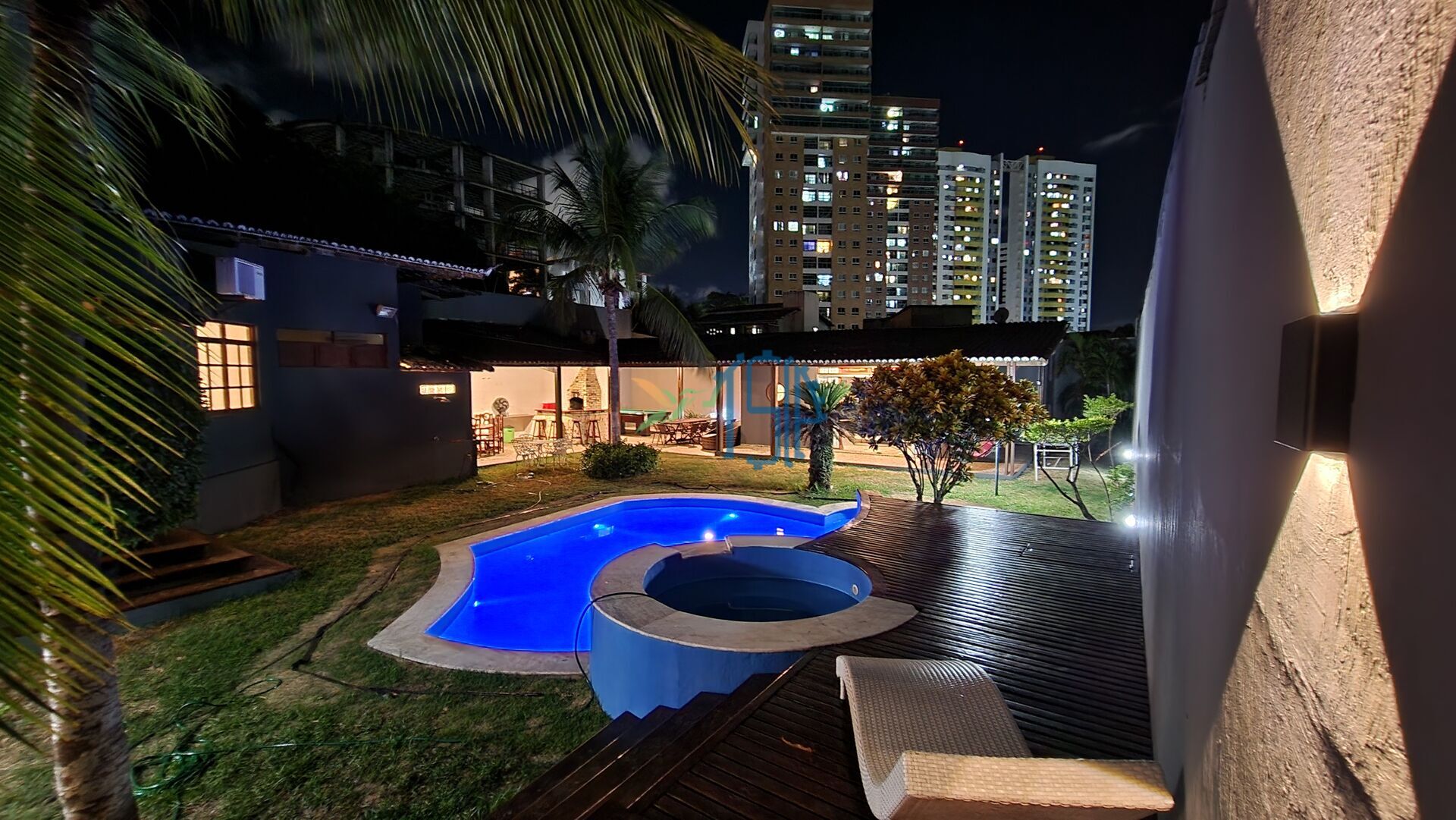-Área de lazer com piscina e jacuzzi.