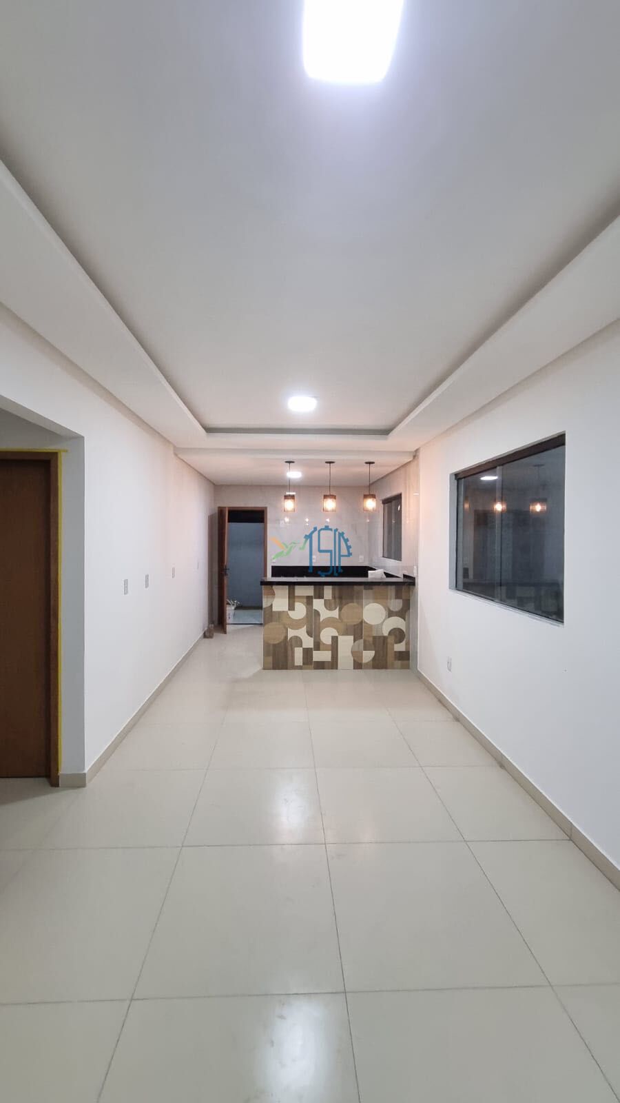 ✔️ Sala ampla para dois ambientes, integrada à cozinha por uma bancada moderna de 1,80m