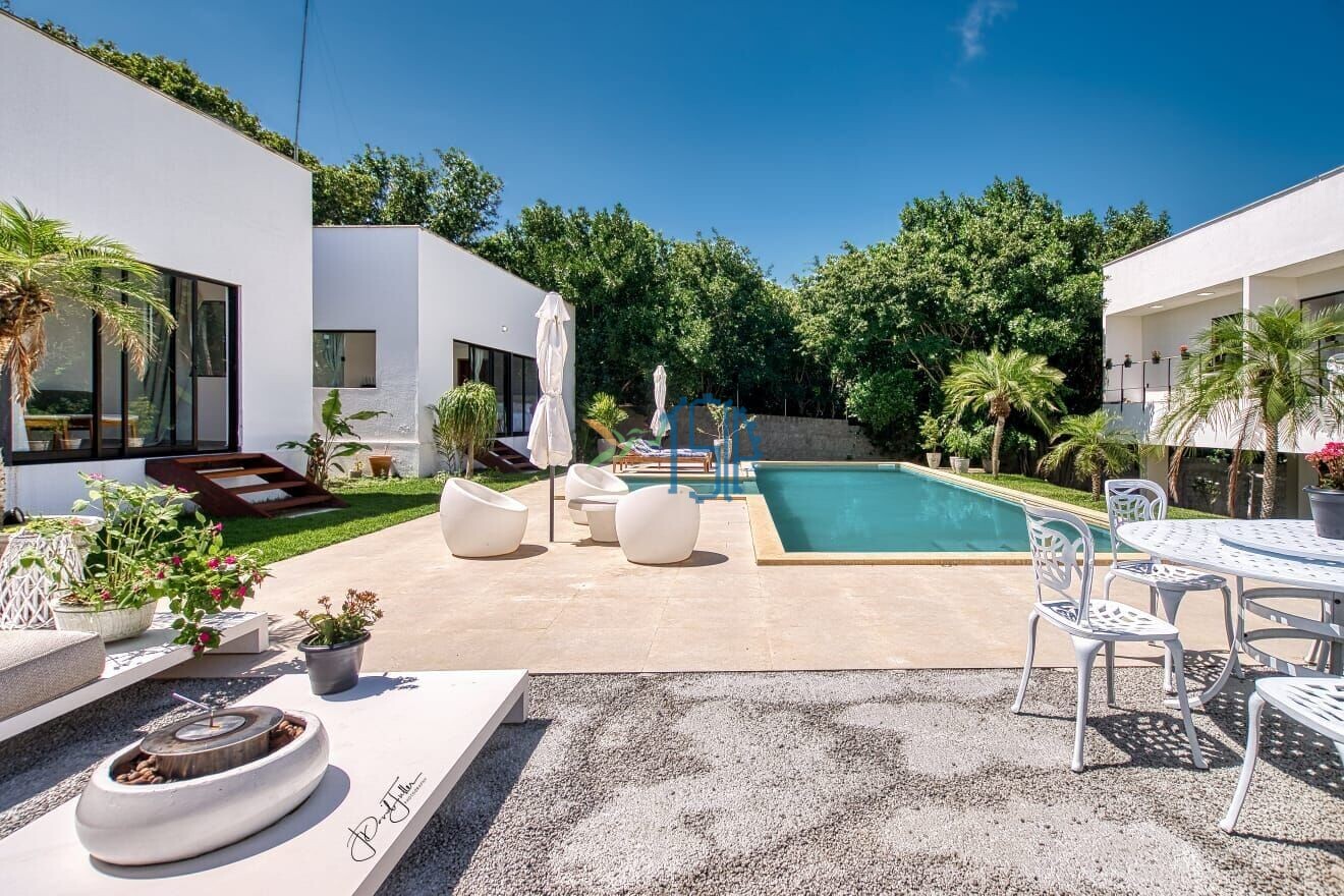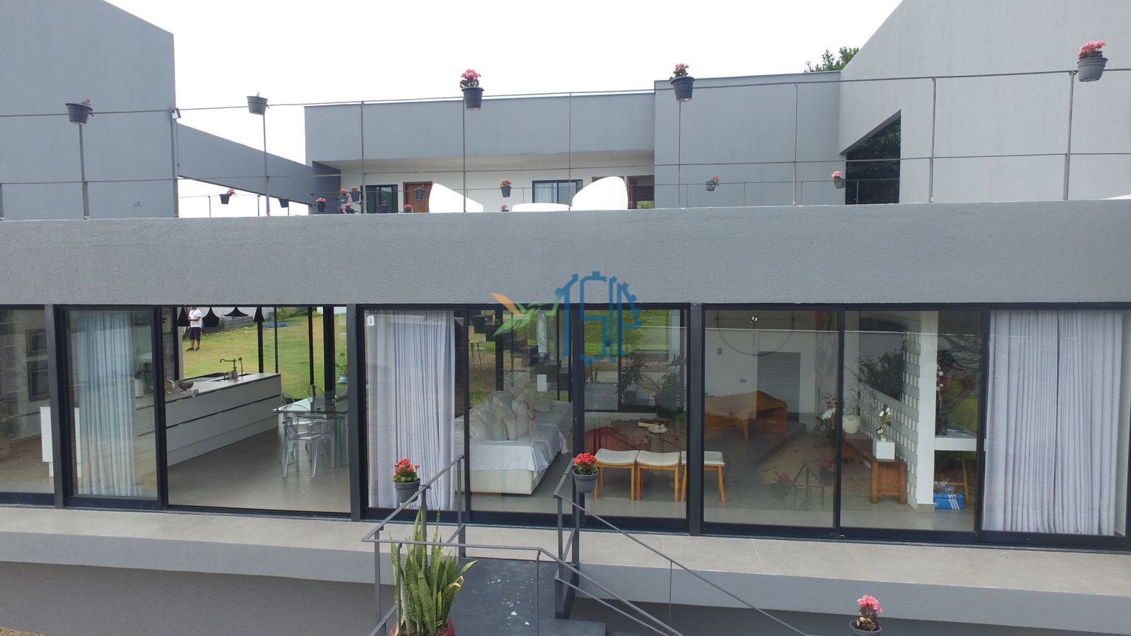 Com 2.000 m² de terreno, sendo 317m² de área construída, o imóvel tem uma arquitetura arrojada, ao todo são 3 prédios independentes, comtendo em um deles, sala, cozinha, lavabo e terraço, e nas 2 outras construções