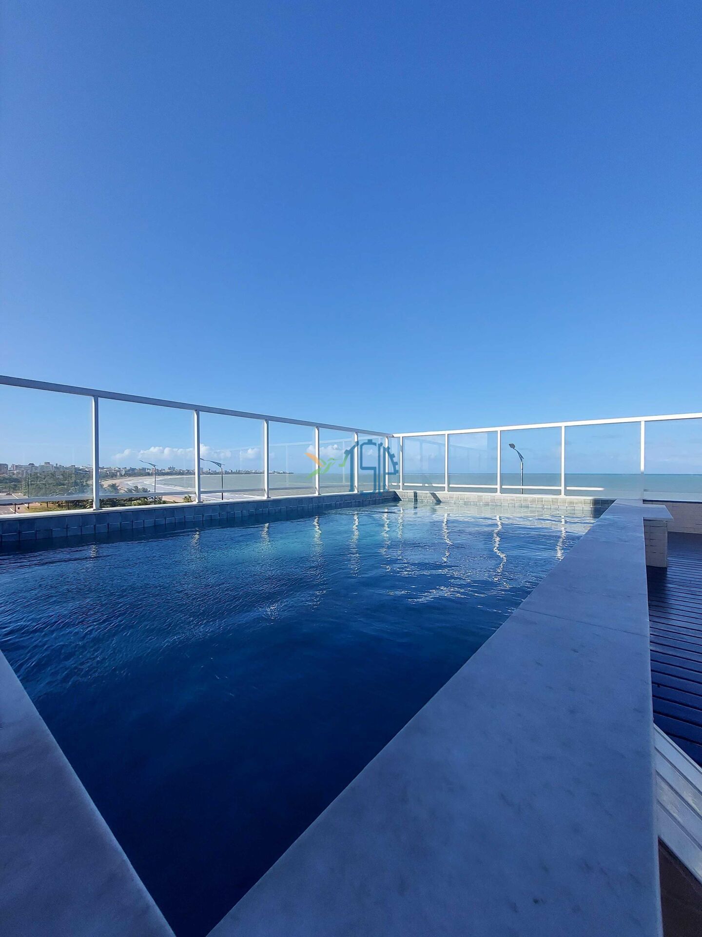 Piscina na cobertura com vista pra o mar