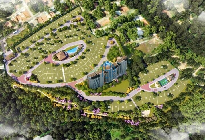 O lote à venda é o de numero 93, único lote disponível dando na mata, com vista para o vale do Pium, plano.